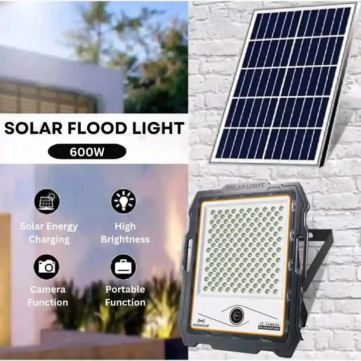 Upgrade your outdoor security and lighting with the 600 W Solar Flood Lamp featuring an integrated high-definition surveillance camera and motion sensor — a perfect fit for home, garden, driveway, or any outdoor area. With a powerful solar panel charging system, this unit runs entirely off sunlight, so there are no wires to the grid and you enjoy true flexibility of installation. The 600 W LED output floods the area with bright illumination, while the built-in camera monitors activity in real time, delivering both deterrence and awareness in one sleek package.
