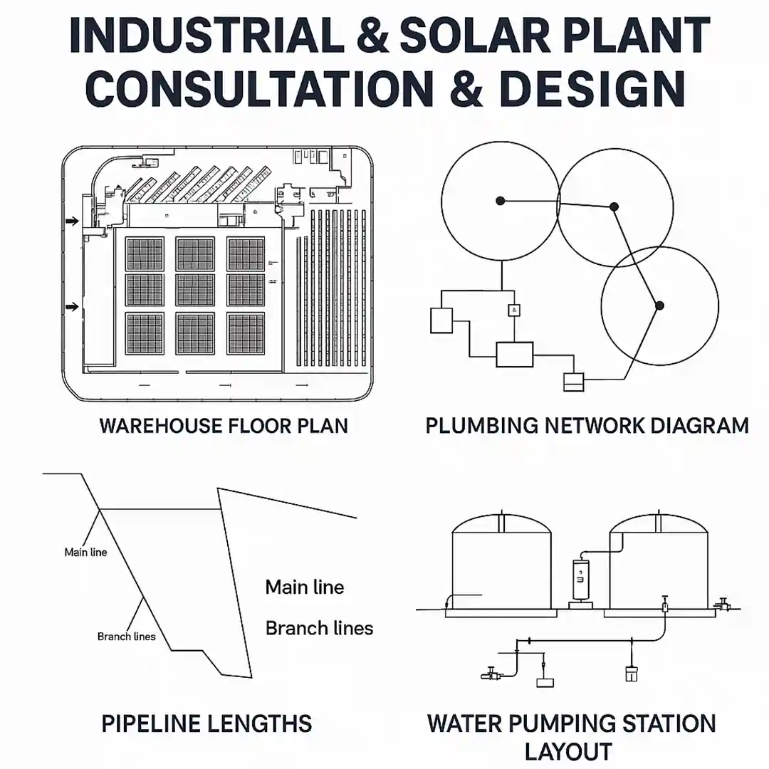 Our Industrial & Solar Plant Consultation & Design service is tailored for factories, warehouses, and utility-scale solar projects. We provide end-to-end feasibility studies, detailed engineering design, and compliance documentation to ensure smooth execution of large solar projects.