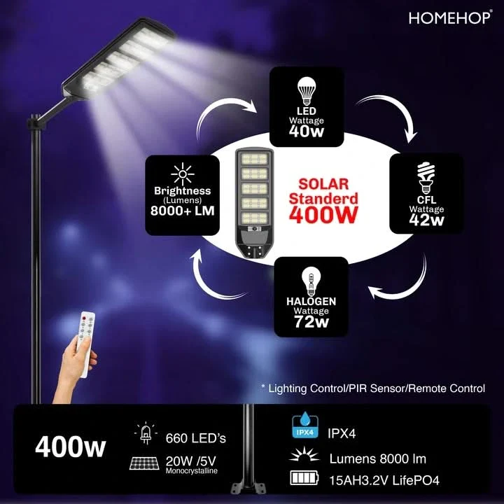 400W Solar LED Street Light – Motion Sensor, Waterproof, with Remote | Outdoor Lighting for Home & Garden