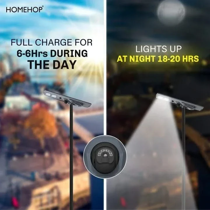 Powered entirely by sunlight, the high-efficiency solar panel charges during the day, storing energy in a durable lithium battery. The powerful 400W LED light provides wide-angle, high-lumen brightness—automatically turning on at night and brightening further when motion is detected. This intelligent lighting not only enhances visibility but also saves energy.