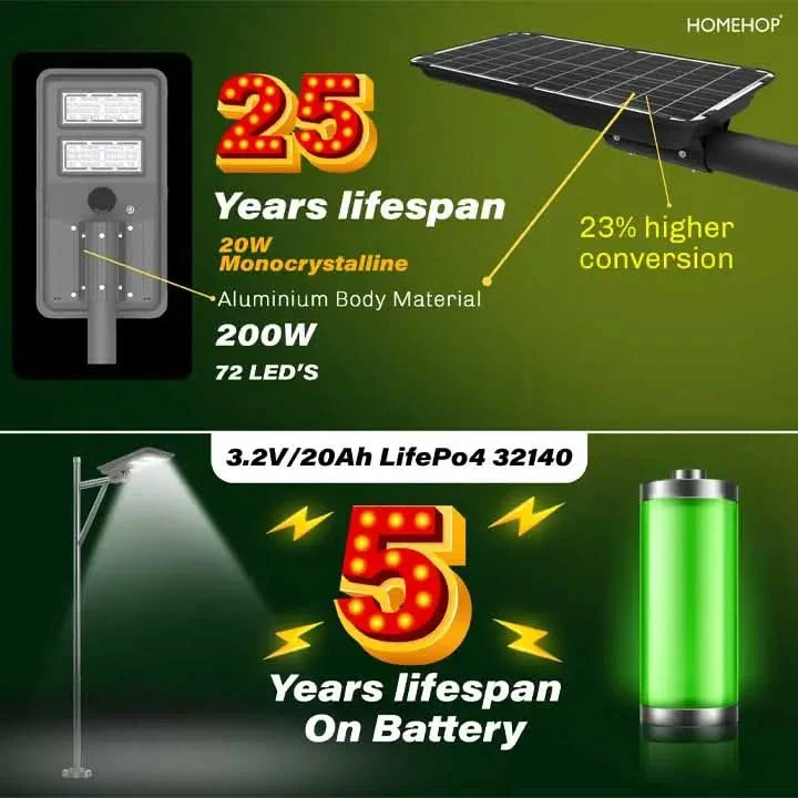 Upgrade your outdoor lighting with this robust and sustainable 200W solar street lamp — the perfect choice for bright, automatic, and weatherproof illumination.