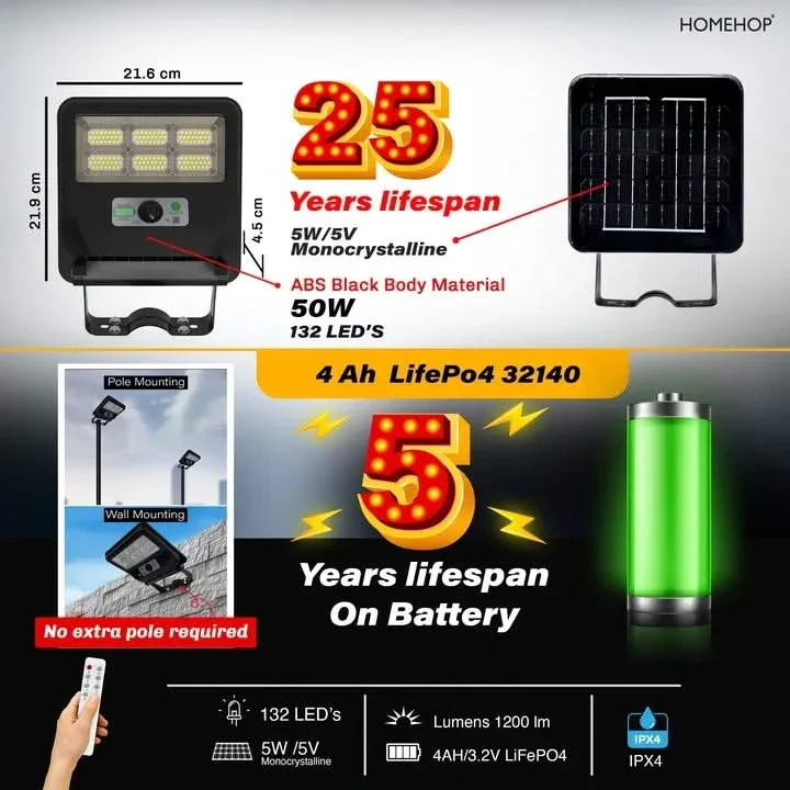 Choose this 50W Solar Street Light for a sustainable, convenient, and effective lighting solution that brightens your outdoor areas while protecting the environment.