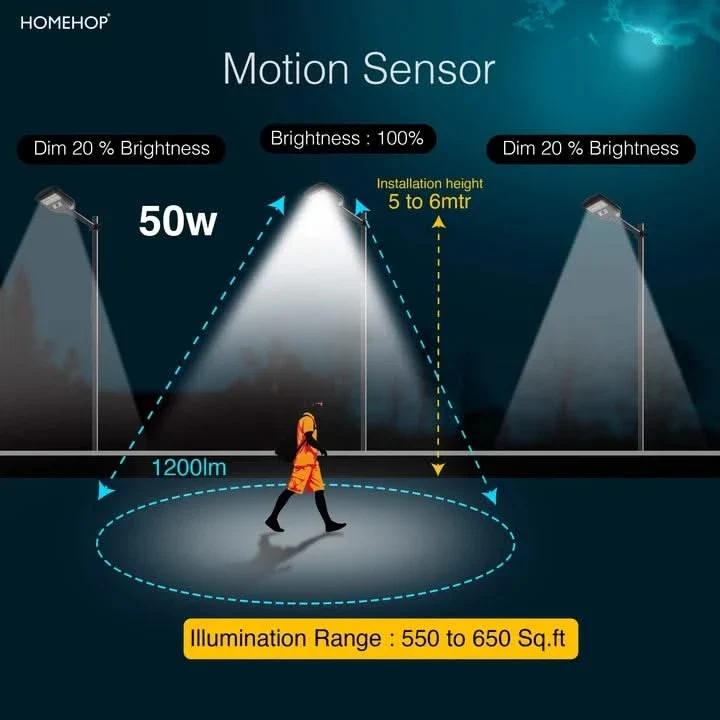 50W Solar Street Light with Waterproof Motion Sensor – Automatic Outdoor LED Lighting